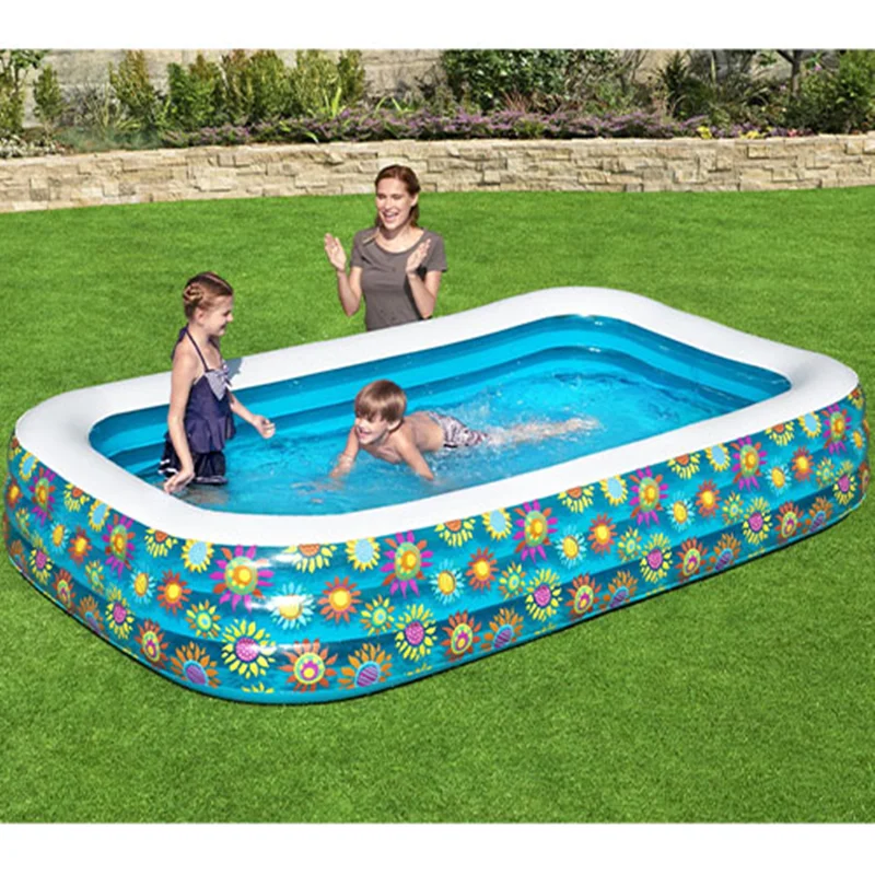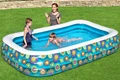 یکی دیگر از استخر های بادی تولید شده توسط شرکت بست وی که در سال جاری میلادی به بازار عرضه شده است، استخر بادی بزرگ با طرح گل های رنگارنگ 54121 می باشد. این استخر بادی یکی از بهترین نمونه های استخر بادی خانوادگی بوده که دارای ابعادی نسبتا بزرگ می باشد و برای استفاده در فضاهای بیرون از منزل طراحی شده است. این محصول ابعادی مناسب دارد که بزرگسالان و کودکان به راحتی می توانند در داخل آن به تفریحات آبی پرداخته و از بازی در آب لذت ببرند. محصول فوق ساختاری مستطیلی شکل دارد و دارای دیواره هایی پهن است. به طوری که می توان به راحتی و بدون نگرانی از واژگون شدن استخر بادی، به دیواره آن تکیه داد. این دیواره به رنگ آبی بوده و بر روی آن طرح های زیبایی از انواع گل های رنگارنگ به چشم می خورد. این محصول را می توانید به راحتی حمل و جابه جا کنید. زیرا دارای وزن بسیای کمی بوده و از ابعاد بسته بندی کوچکی برخوردار است.