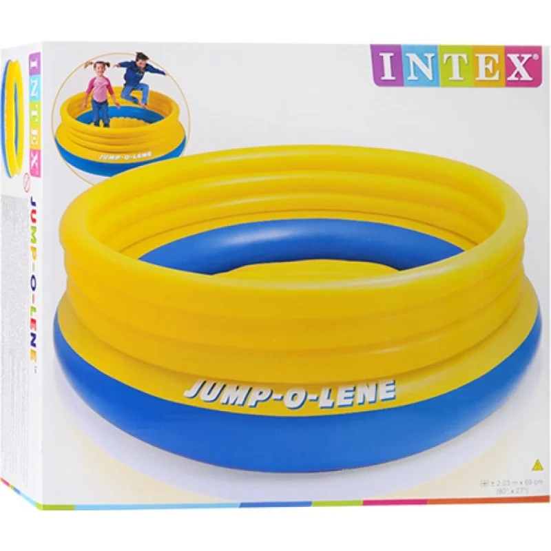 استخر بادی جامپینگ با قطر ۲۰۳ سانتی متر یکی از جدیدترین استخر های بادی مخصوص جامپینگ که محصول شرکت اینتکس بوده و از کیفیت فوق العاده ای بهره می برد. این استخر از جنس PVC با روکش طرح چرم رنگی ساخته شده و مقاومت بسیار بالایی را در اختیار فرزندان شما قرار می دهد. این محصول با ابعاد (قطر: ۲۰۳ سانتی متر، ارتفاع: ۶۹ سانتی متر) تا وزن ۶۰ کیلوگرم را (هنگام پرش) تحمل می کند. از این استخر بادی علاوه بر پرش می توان در درون آن از توپ های پلاستیکی نیز برای سرگرمی فرزندتان استفاده نمایید. این استخر بادی به همراه خود یک پمپ باد دستی داشته و از برچسب تعمیرات نیز بهره می برد. وزن کلی این محصول به ۱۷٫۵ کیلوگرم می رسد که می توانید در هر مکانی حمل کرده و استفاده نمایید.همچنین در بسته بندی این محصول یک برچسب تعمیرات ویک دفترچه رانما در صورت نیاز به راهنمایی بیشتر وجود دارد برای خرید این استخر بادی به نمایندگی اینتکس مراجعه نمایید.