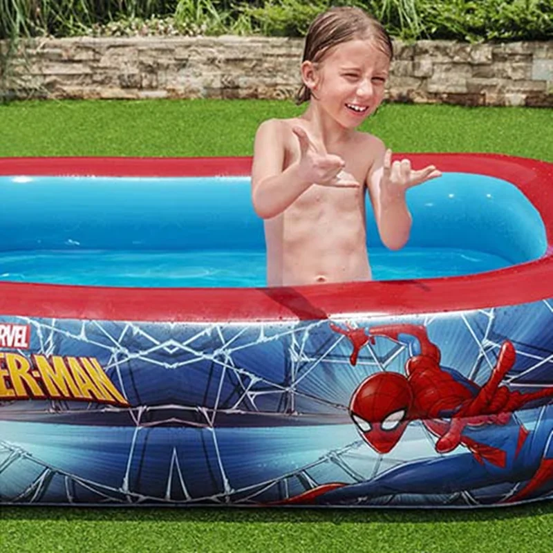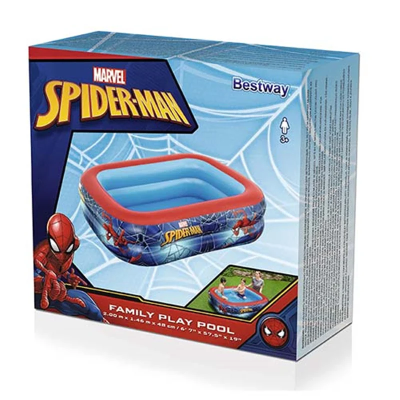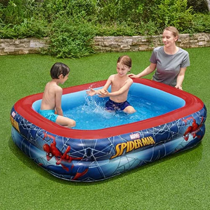 یکی از پرکاربرد ترین نمونه های استخر بادی کودک که توسط شرکت بزرگ بست وی طراحی و تولید شده است، استخر بادی مستطیلی طرح اسپایدرمن 98011 است که با قیمتی ارزان توسط سایت پول اینتکس به فروش می رسد. این استخر بادی به صورت مستطیلی و با ابعادی بزرگ ساخته شده است و می توان آن را جزو پرفروش ترین نمونه های استخر بادی بست وی در نظر گرفت. طراحی زیبا با ابعاد کاربردی و کیفیت ساخت بالا، توانسته در مدت کوتاهی رضایت خاطر خریداران را جلب کند. این محصول برای استفاده و بازی چند کودک به صورت هم زمان مناسب بوده و می توان آن را به راحتی در فضاهای گوناگون راه اندازی کرد. حتی می توانید این محصول را در فضاهایی هم چون استخر های بزرگسالان پر از آب کنید تا کودکان در کنار والدین به بازی مشغول شوند. این محصول دیواره ای دو لایه دارد و دارای دو دریچه باد مجزا می باشد. این دیواره پهن بوده و ضخامت بالایی دارد.