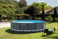 استخر پیش ساخته فریمی گرد با قطر 488 سانتی متر محصولی جدید وبا کیفیت از شرکت معتبر اینتکس بوده که بصورت گرد طراحی وساخته شده است وجنس بدنه ی آن از pvc برزنتی با پایه های آلومینیومی ضد زنگ میباشد که در برابر اشعه آفتاب وهرنوع دمای آب از مقاومت بالایی برخوردار است وجنس با کیفیت این استخر این امکان را به مصرف کننده داده تا بتوان درفضای باز از آن استفاده نمود یک پمپ تصفیه آب فیلتری 12 ولتی دارد که آب استخر توسط این پمپ به خوبی تصفیه شده وبرای دفعات بعدی قابل استفاده میگردد به همراه این محصول زیبا یک درپوش برای محافظت بیشتر وجلوگیری از ورود زباله ویک زیرانداز برای طول عمربیشتروجلوگیری از فرسودگی کف استخر پیش ساخته در نظر گرفته شده است ویک نردبان پیش ساخته دارد که نیاز به نصب مجزا دارد واین نردبان استفاده از استخر را برای مصرف کننده راحت میکند دارای ابعاد قطر 488 سانتی متر,ارتفاع 122 سانتی متر,باتوجه به این ابعاد ظرفیت آب آن برابر با 19156 لیتر است یک دریچه خروجی آب نیز دارد که توسط این خروجی آب استخر به آسانی تخلیه می شود وزن استخر89.3 کیلوگرم است که این وزن سبک این امکان را به مصرف کننده میدهد تا به راحتی استخر را جابجا وحمل نماید وبه مکان دلخواه انتقال دهد از این استخر علاوه بر استفاده برای تفریحات آبی در صنعت پرورش ماهی وکشاورزی نیز کاربرد دارد قابلیت نصب بصورت توکار وروکار را نیز دارد دارای گارانتی وخدمات پس ازفروش میباشد همچنین در بسته بندی این محصول یک DVD آموزشی وجود دارد که بصورت تصویری مراحل نصب وراه اندازی به تصویر کشیده شده است.برای خرید این استخر پیش ساخته به نمایندگی اینتکس مراجعه نمایید .