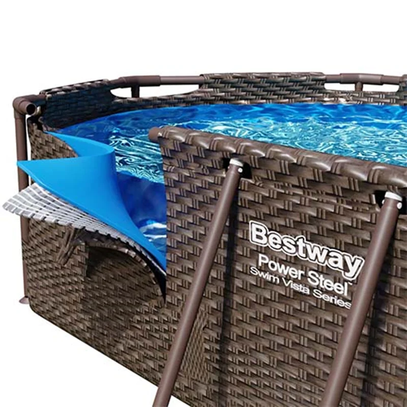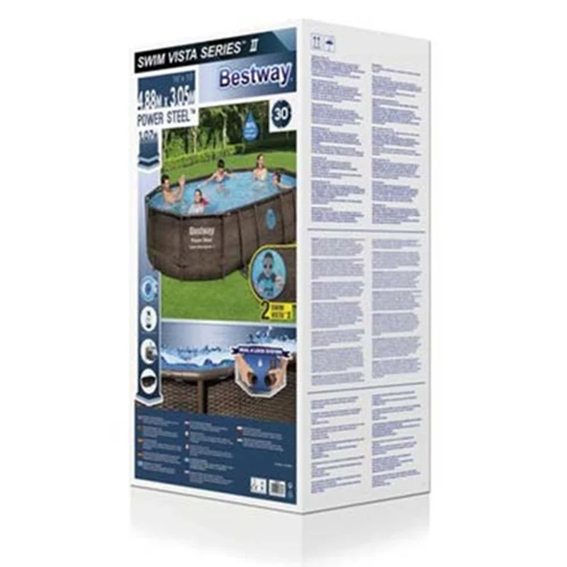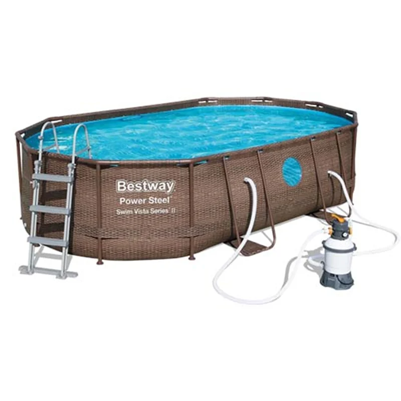 استخر پیش ساخته بست وی بیضی 56946 محصولی جدید و زیباست که کمپانی بست وی طبق معمول این محصول را همراه با ظاهری شیک و خاص روانه بازار نموده است. قطعا بحث طراحی یک محصول جزو مواردی است که شما باید به آن توجه ویژه داشته باشید و سعی کنید همواره محصولی را برای خرید خود انتخاب کنید که هم از نظر ظاهری و هم از نظر جنس و کیفیت توانسته از خود بهترین مورد را عرضه کند. در همین رابطه نیز این استخر پیش ساخته ظاهری بیضی شکل دارد که این مسئله سبب شده تا از نظر ساختار طراحی نسبت به اکثر استخرهای پیش ساخته متفاوت و متمایز باشد. بدنه اصلی این محصول نیز همان طور که در تصاویر این استخر پیش ساخته مشخص است دارای ساختاری است که با عنوان طرح چوب بیشتر شناخته می شود و با رنگی قهوه ای و زیبا شما می توانید این محصول زیبا را مشاهده کنید.