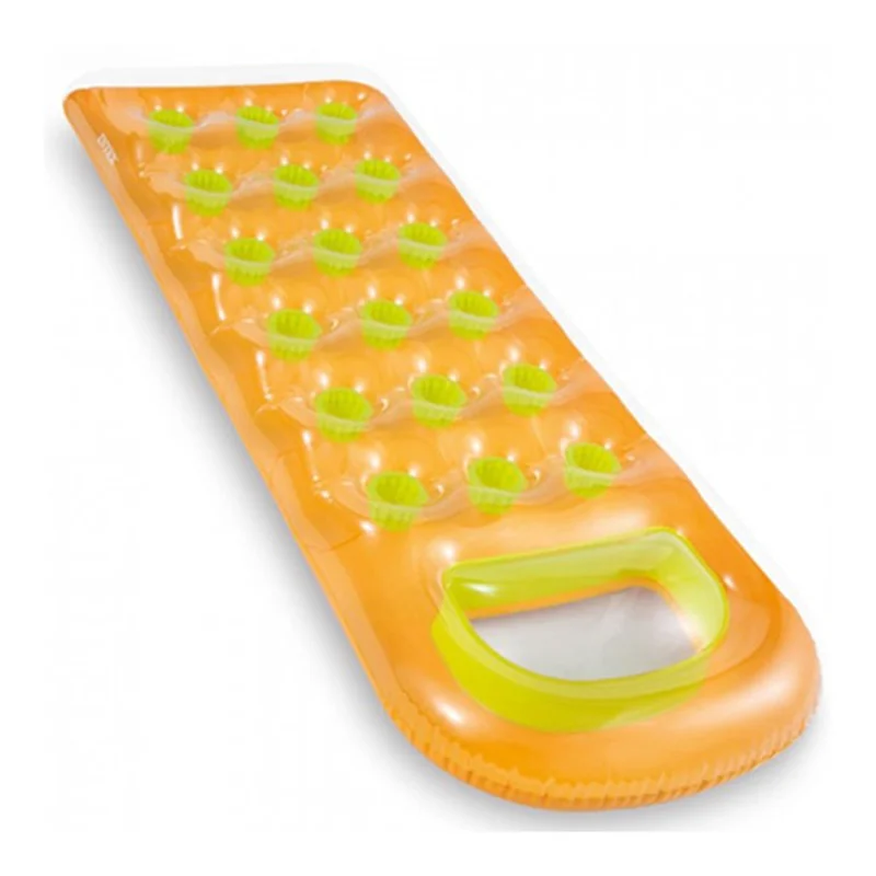 تشک بادی روی آب اینتکس طرح حبابی نارنجی 59895 یکی دیگر از جذاب ترین نمونه های تشک بادی داخل ماشین است که توسط شرکت بزرگ اینتکس تولید شده و توانسته رضایت خریداران را جلب کند. این محصول با برخورداری از طراحی ویژه و جذاب مناسب برای استفاده بزرگسالان بوده و ابعادی استاندارد دارد که می توانید به راحتی از آن استفاده کرده و برای تمامی افراد با جثه های گوناگون مناسب است. این تشک بادی روی آب به صورت مستطیلی بوده و به صورت حبابی طراحی شده است تا علاوه بر داشتن ظاهری زیباتر، دارای انعطاف بالاتر بوده و می توان به راحتی از آن استفاده کرد.