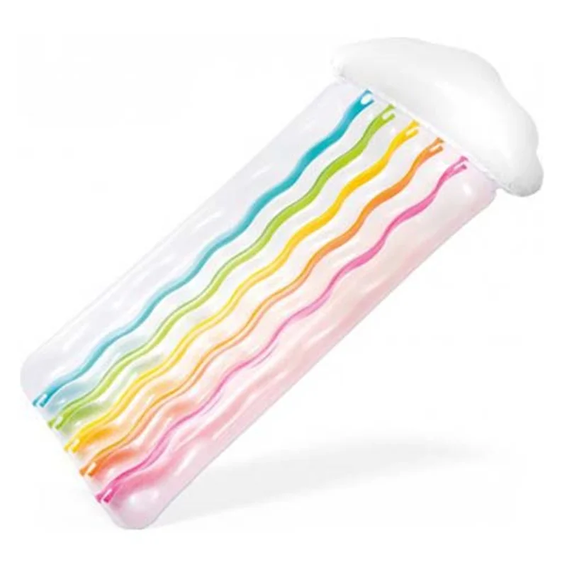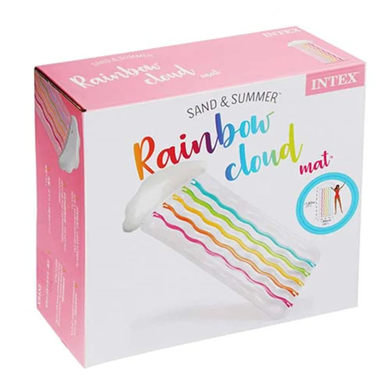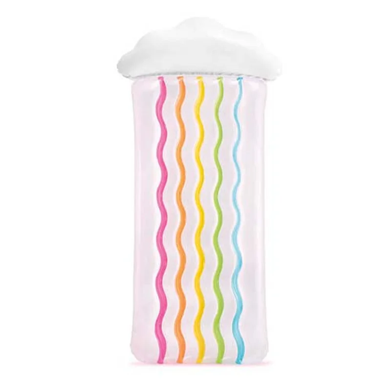 تشک بادی روی آب اینتکس طرح رنگین کمان 56804 یکی از بهترین انواع تشک بادی روی آب است که با طراحی بسیار زیبا و خاص خود توانسته به فروش بالایی برسد. این محصول ویژه ابعادی استاندارد دارد که برای استفاده تمامی بزرگسالان مناسب بوده و به فرم مستطیل می باشد. در قسمت بالای این مستطیل، یک بالش بادی به شکل ابر متصل شده است که شما می توانید در زمان استفاده از این محصول، سر خود را بر روی آن قرار دهید. بدنه این تشک بادی رنگارنگ و به صورت رنگین کمانی طراحی شده است که در کنار بالش بادی به شکل ابر، ظاهر جذاب و فانتزی را ایجاد می کند.