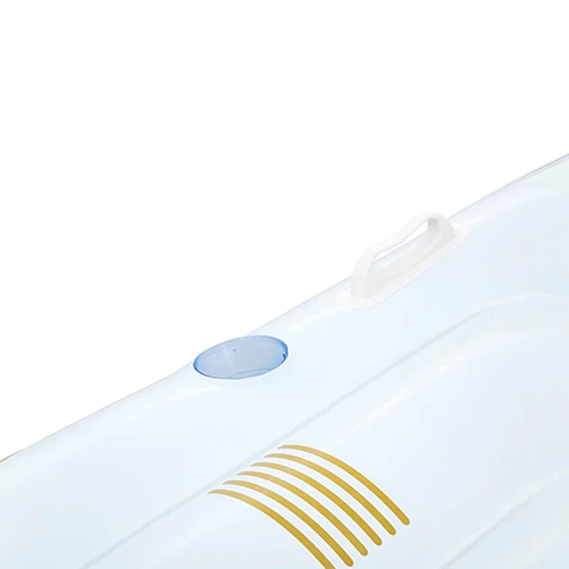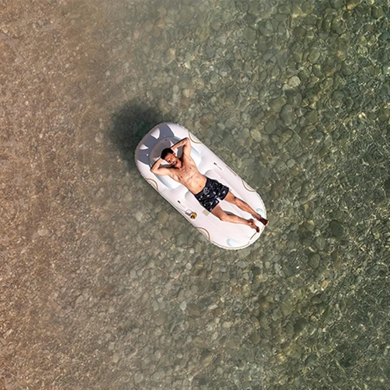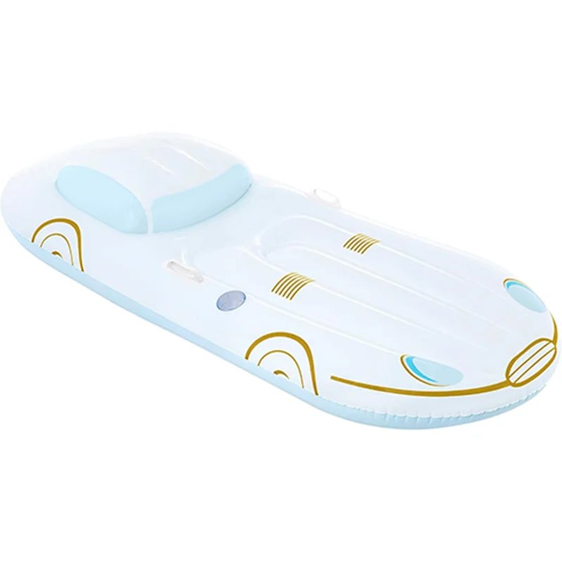 بدنه این تشک بادی روی آب به صورت یک ماشین سفید رنگ طراحی شده است که در قسمت بالای آن یک تکیه گاه بادی متصل به بدنه موجود می باشد. این محصول به صورت مواج طراحی شده است که مانع از تجمع آب بر روی بدنه می شود و هم چنین انعطاف محصول را افزایش می دهد. به دلیل دارا بودن تکیه گاه و طراحی مواج، سطح این تشک بادی روی آب بسیار راحت بوده و می توان به خوبی از آن استفاده نمود. از ویژگی های این محصول برخورداری از بدنه ای مقاوم و با کیفیت است. به طوری که در صورت رعایت نکات نگه داری تا سال ها قابل استفاده می باشد و نیاز شما را از خرید مجدد برطرف می کند. این محصول در زمان کوتاهی راه اندازی شده و برای راه اندازی آن لازم است تا از یک پمپ باد استفاده کنید. پس از استفاده نیز می توانید محصول را به راحتی تخلیه کرده تا به حالت اولیه بازگردد و فضای کمی را اشغال کند. این محصول وزن کمی داشته و در حالت تخلیه فضای کمی را اشغال می کند.
