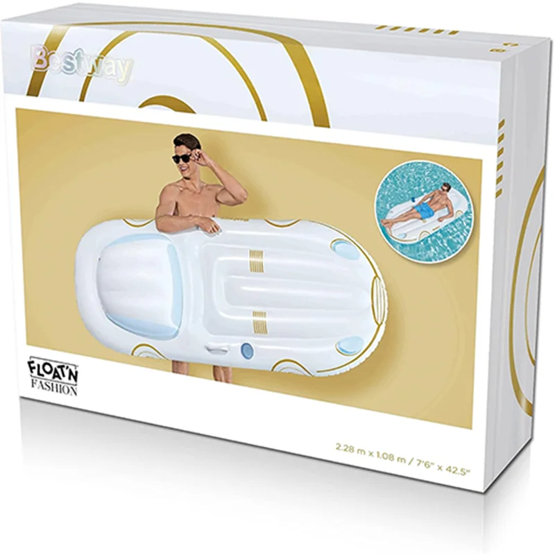 تشک بادی روی آب بزرگسال بست وی مدل ماشین سفید یکی دیگر از جدیدترین محصولات شرکت بست وی است که با ارزان ترین قیمت در سایت پول اینتکس عرضه می شود. این تشک بادی روی آب دارای طراحی خاص و جذابی بوده که برای استفاده بزرگسالان طراحی شده است و می توانید به راحتی از آن به صورت طولانی مدت استفاده نمایید. این محصول با دارا بودن کیفیت ایده آل، برای استفاده در آب های آرام مانند استخر ها و دریاچه ها مناسب بوده و فضایی بی نظیر را در اختیار شما قرار می دهد.