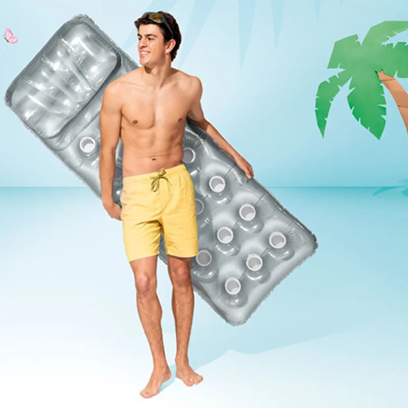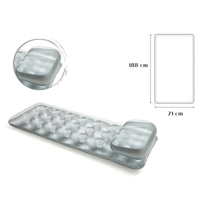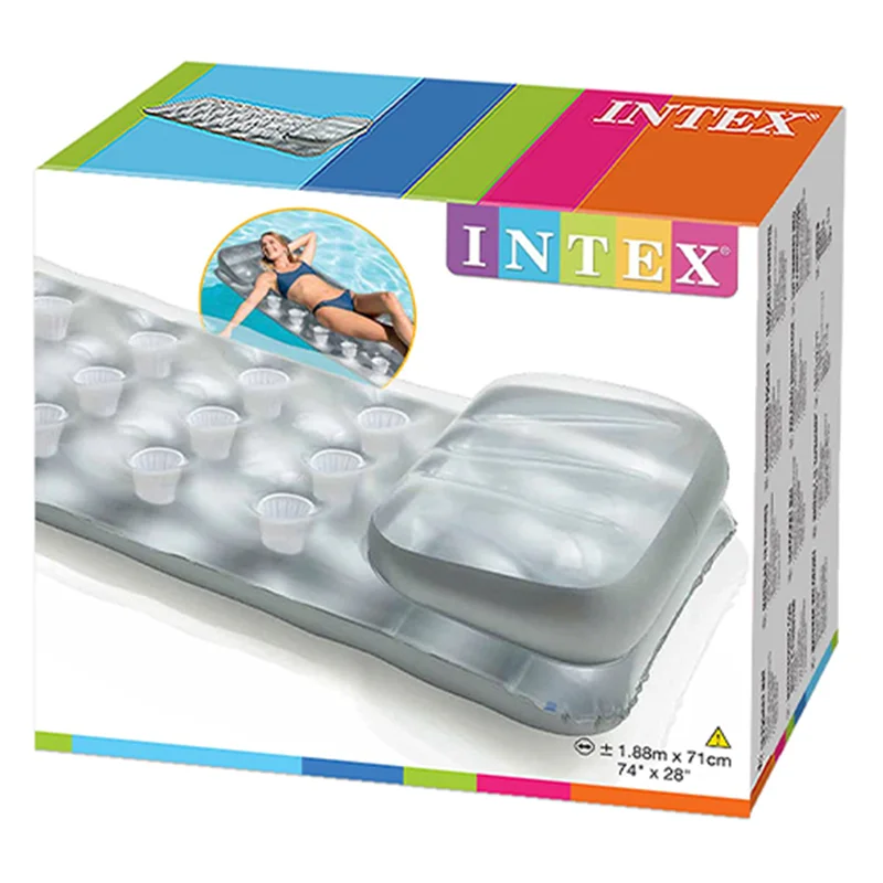 یکی دیگر از خاص ترین تولیدات شرکت اینتکس تشک بادی روی آب طوسی با بالش بادی 58894 است که با طراحی خاص و ویژه توانسته نظر مخاطبان را جلب کند و به فروش بالایی برسد. این تشک بادی خاص با طراحی ساده و شیک خود محصولی بی نظیر برای استفاده در انواع آب های آرام و استخر ها محسوب می شود و به واسطه برخورداری از وزن کم می توانید به راحتی آن را در فضاهای گوناگون به همراه خود برده و از آن استفاده کنید. این محصول مستطیلی شکل بوده و دارای ابعادی کاملا استاندارد است که فضای کافی برای دراز کشیدن یک نفر بزرگسال را فراهم می کند. بر روی بدنه این تشک بادی حفره هایی وجود دارد که موجب انعطاف بیش تر تشک بادی شده و فضایی بسیار راحت را ایجاد می کند هم چنین وجود این حفره ها باعث می شود تا هوا در سطح محصول در جریان باشد و از استراحت بر روی این تشک بادی لذت ببرید.
