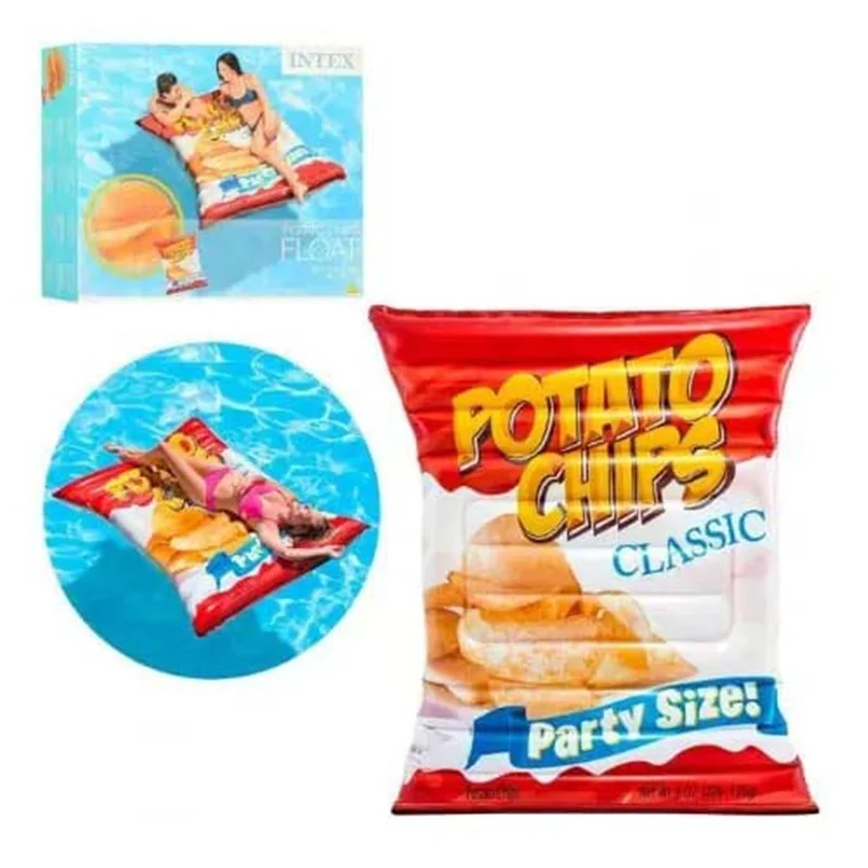 تشک بادی روی آب مدل چیپس 58776 یکی دیگر از بادوام ترین انواع تشک بادی روی آب برای رده سنی بزرگسال بوده که توسط کارخانه اینتکس با ساختاری طبی و استاندارد و طول عمر بالا طراحی و با یک قیمت مناسب روانه بازار شده است. ساختار بدنه این تشک بادی کاملا مستطیل شکل بوده که به منظور استفاده در استخر و سایر آب های آرام طراحی شده که از رویه ای نرم با خطوط موازی تشکیل شده که به این محصول ساختاری مواج و ضدتعریق می بخشد. چرا که این بدنه با امکان گردش ازدانه هوا بین بدن فرد و رویه محصول از تعریق شما در زمان استفاده اجتناب به عمل می آورد. مهم ترین ویژگی این محصول مربوط به طراحی ظاهری آن بوده که بدنه فانتزی و زیبا با طرحی مشابه با یک بسته چیپس طراحی شده تا مورد توجه رده سنی جوان واقع گردد.