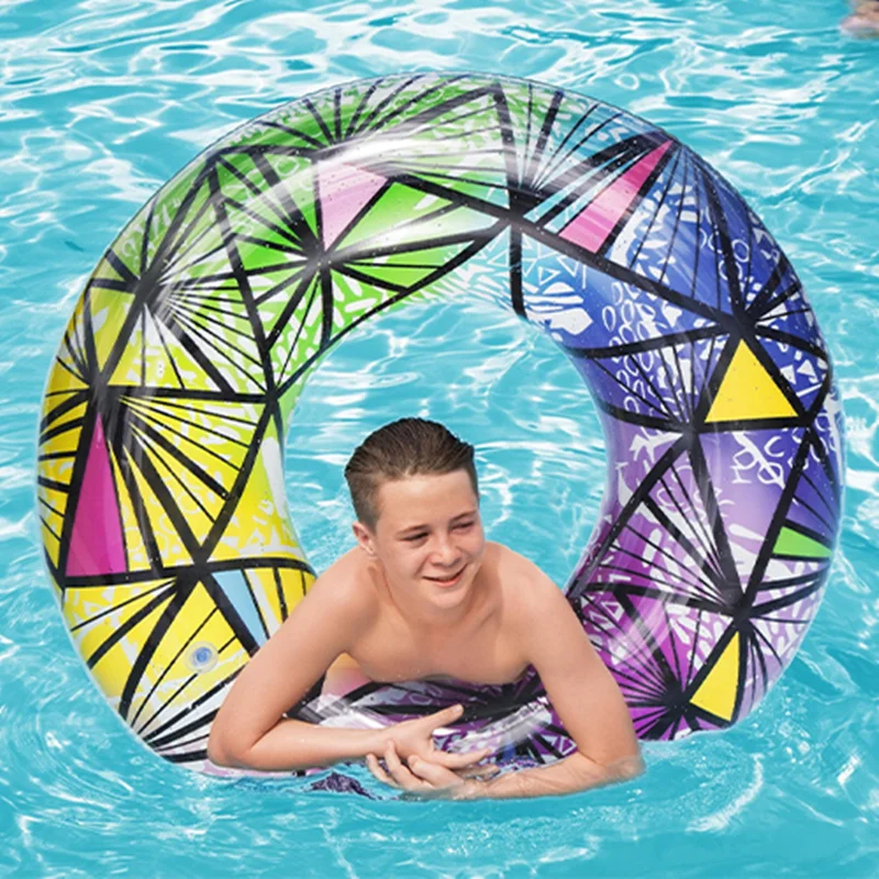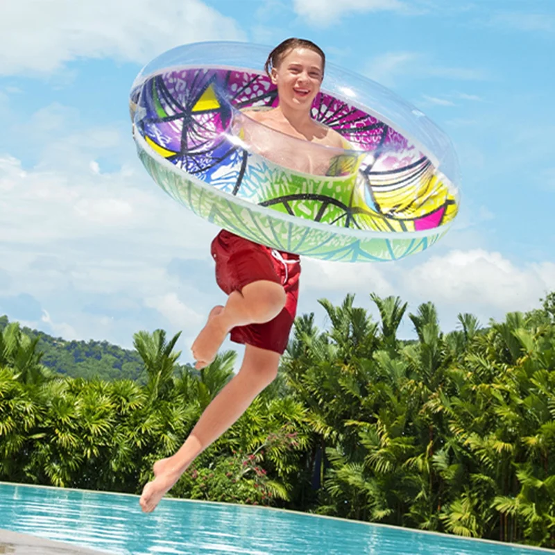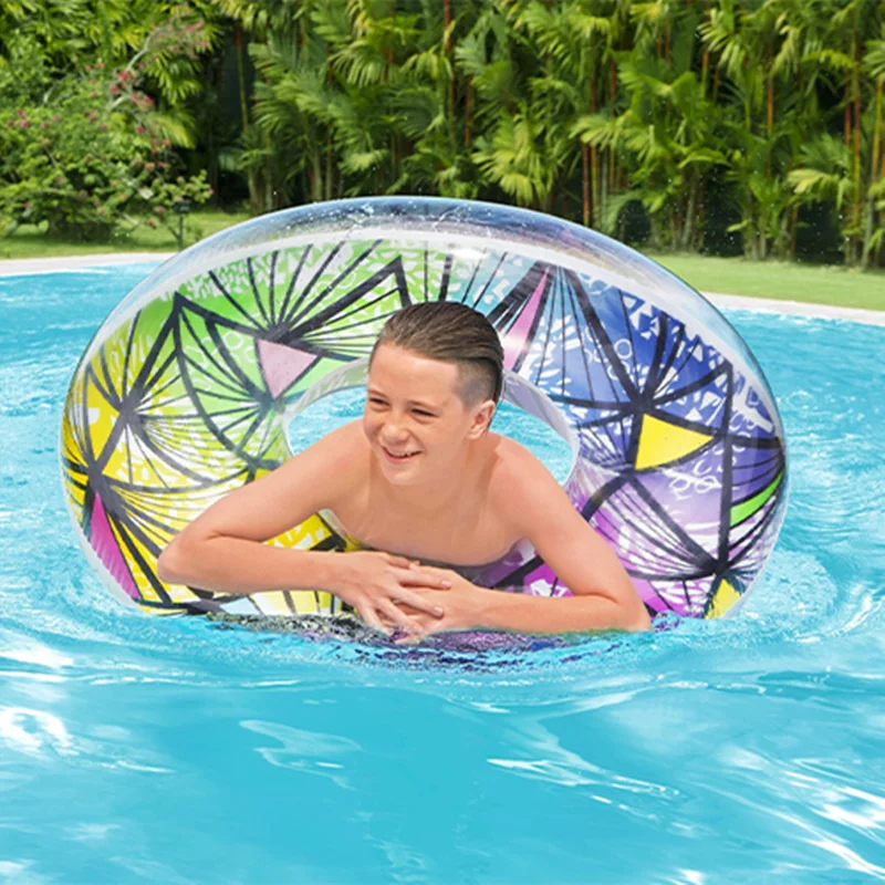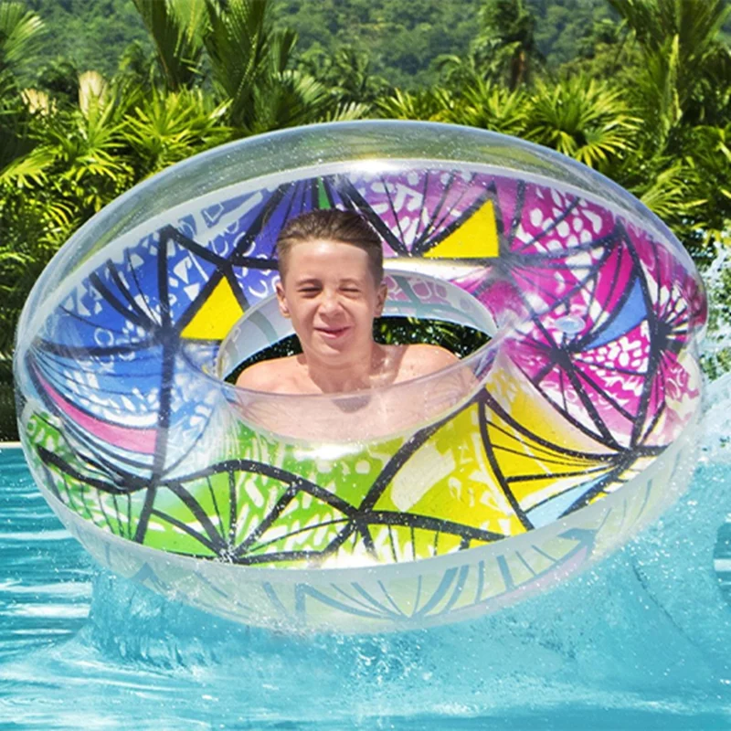 حلقه شنا بادی تک نفره طرح Stained Glass بست وی 36232 یکی از جذاب ترین نمونه های حلقه شنا بادی است که با ابعادی استاندارد، برای استفاده بزرگسالان طراحی شده است. این محصول ویژه و عالی با طراحی زیبا و ساختار بدنه بسیار ساده و کاربردی، برای استفاده تمامی بزرگسالان مناسب است و به راحتی دور بدن افراد قرار می گیرد و مانع از فرو رفتن افراد در داخل آب می شود. به این ترتیب با استفاده از این حلقه شنا بادی می توانید ساعت ها بر روی آب شناور باشید و لذت ببرید.
