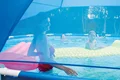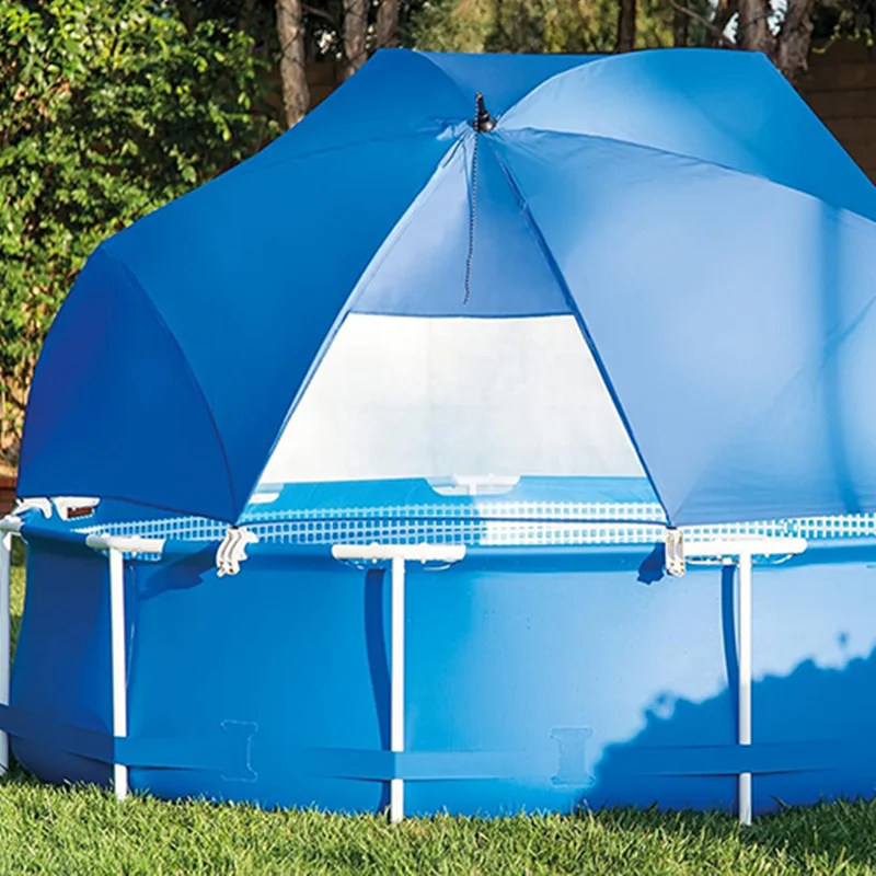 | سایر ویژگی ها | تاشو و حمل آسان پنجره تهویه بزرگ برای جریان هوا دارای چهار نقطه اتصال به بدنه استخر پیش ساخته برای استحکام بیش تر مقاوم در برابر باد تا 19 کیلومتر بر ساعت قابل استفاده در آب و هوای بارانی و آفتابی |