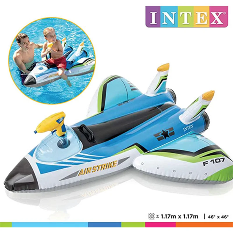 یکی از جذاب ترین نمونه های شناور بادی روی آب که مخصوص کودکان طراحی و ساخته شده است، شناور بادی روی آب اینتکس طرح جت intex 57536 می باشد که با طراحی کاربردی و زیبای خود می تواند به راحتی در اولین برخورد توجه کودک را جلب کرده و هدیه ای مناسب برای کودکان محسوب می شود. این شناور بادی به صورت یک جت زیبا با رنگ آمیزی شاد و فانتزی طراحی شده است که فضای مناسبی بر روی آن وجود دارد که کودک می تواند به راحتی بر روی این جت نشسته و از شناور ماندن بر روی آب لذت ببرد و به بازی های کودکانه بپردازد. این شناور بادی در دو رنگ قرمز و آبی موجود است که با توجه به علاقه کودک می توان یکی از این دو شناور را خریداری کرد. در قسمت جلویی این شناور به جای دسته کنترل جت، یک آبپاش نصب شده است که بازی درآب را برای کودکان با هیجان بیش تری همراه می کند. این آبپاش به سادگی قابل استفاده می باشد. این شناور بادی را می توانید به همراه خود برده و در محیط هایی با آب های آرام به کودک اجازه استفاده دهید.