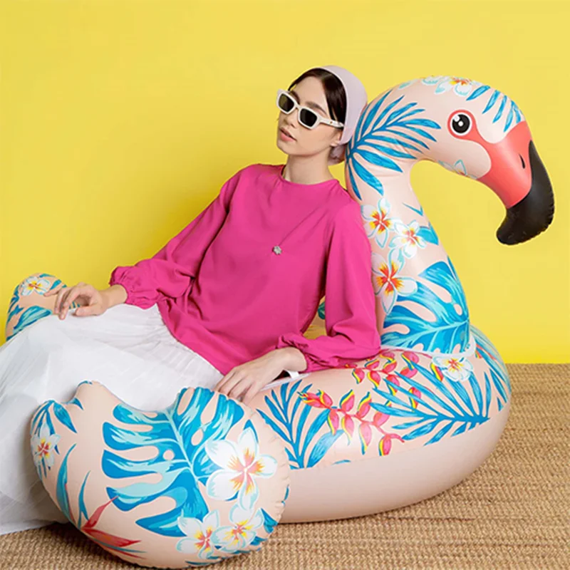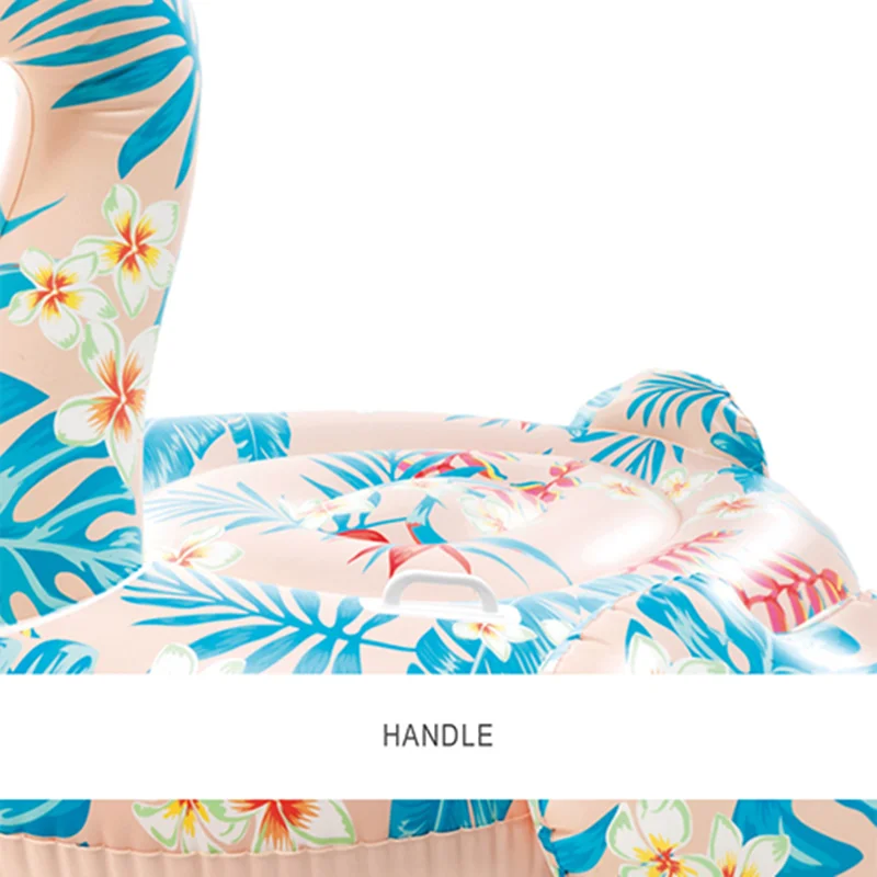 شناور بادی روی آب اینتکس طرح فلامینگو هاوایی 57559 یک محصول بادی بسیار هیجان انگیز بوده که برای شناور ماندن بر روی آب طراحی شده است. طرح این شناور بادی به صورت یک فلامینگو می باشد که با برخورداری از طراحی جذاب مورد پسند اغلب افراد قرار می گیرد. ابعاد این شناور بادی به صورت استاندارد بوده و نوجوانان و کودکان و حتی بزرگسالان با جثه کوچک، می توانند از آن استفاده کرده و ساعات زیادی را بر روی آب به صورت شناور باقی بمانند. این محصول به صورت گرد طراحی شده و دارای سر و گردن فلامینگو به صورت حجیم است که برای حفظ تعادل بر روی آب می توان از گردن فلامینگو استفاده کرد.