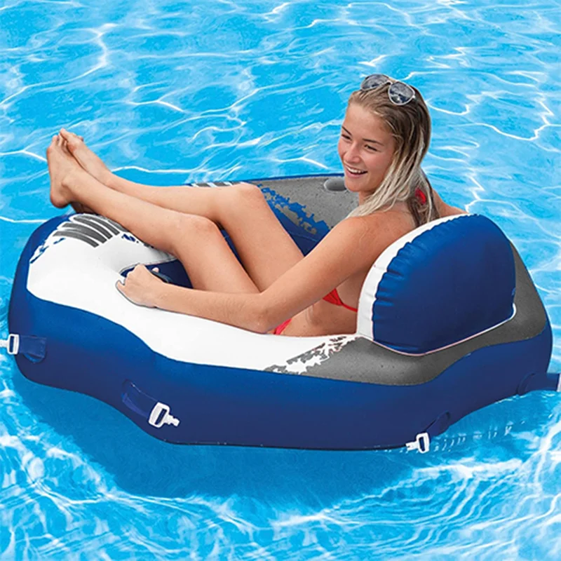 یکی از ویژگی های این شناور بادی برخورداری از پشتی مناسب در زمان استفاده است. این محصول دارای یک پشتی بادی بوده که به راحتی می توانید به آن تکیه دهید و از آن استفاده نمایید. دیگر مشخصه این شناور بادی، نشیمنگاه مربعی شکل و برخورداری از ابعادی استاندارد است که فضای مناسبی را برای استفاده بزرگسالان با جثه های گوناگون دارد. نشیمنگاه این محصول به صورت توری طراحی شده که به راحتی آب را از خود عبور می دهد و آب بر روی شناور بادی جمع نخواهد شد. دور تا دور این محصول دیواره ای پهن دارد که به راحتی بر روی آب شناور باقی مانده و از افتادن و واژگون شدن شما به داخل آب جلوگیری می کند. بر روی بدنه این محصول دو دستگیره است که برای حفظ تعادل بر روی آب کاربرد دارد. هم چنین دور تا دور این شناور بادی کمربندهای کوچکی تعبیه شده است که توسط آن می توانید شناور ها را به یکدیگر متصل کنید و یا طناب نجات را به شناور بادی ببندید.