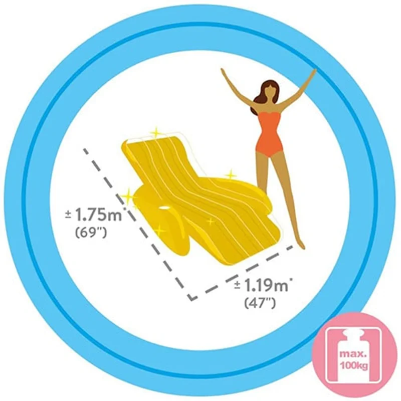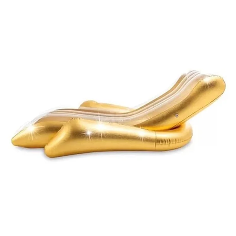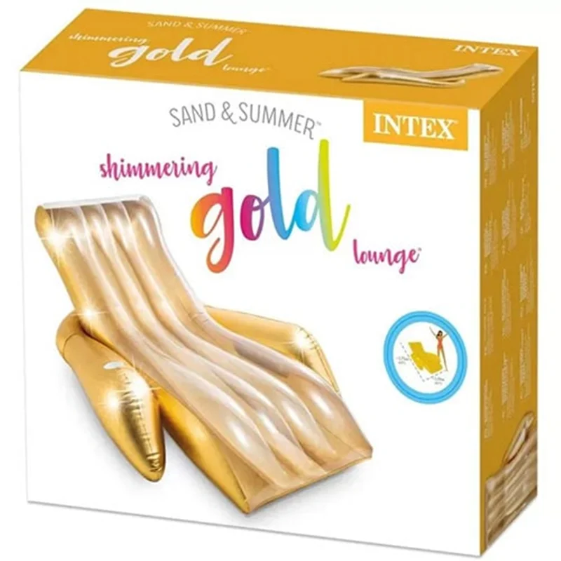 یکی از تولیدات شگفت انگیز و خارق العاده شرکت بزرگ اینتکس که در سال جدید وارد بازار شده و توانسته محبوبیت بالایی پیدا کند، شناور بادی روی آب طرح مبلی طلایی 56803 است. این محصول خاص و بی نظیر یک شناور بادی روی آب است که فضایی بسیار راحت و طبی را برای استراحت و ریلکس شدن شما بر روی آبفراهم خواهد کرد. این محصول به صورت یک مبل با دسته های بسیار راحت طراحی شده است. انحنای موجود در سطح این شناور بادی به خوبی فضایی مناسب برای کمر و گردن را فراهم می کند تا بدن در وضعیتی ایده آل قرار بگیرد. در سطح این شناور خطوط موازی فرو رفته نیز وجود دارد که موجب می شود تا شناور بادی از انعطاف بیشتری بهره مند شود. هم چنین با وجود این طراحی از تجمع آب بر روی سطح شناور بادی جلوگیری شده و هوا به خوبی مابین بدن و سطح شناور در جریان خواهد بود. این محصول به رنگ زیبای طلایی تولید شده است که براق بودن بدنه آن به زیبایی بیش تر کمک می کند.