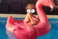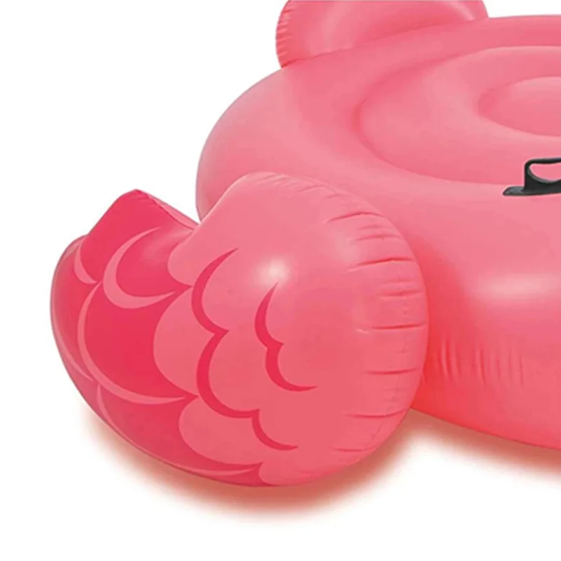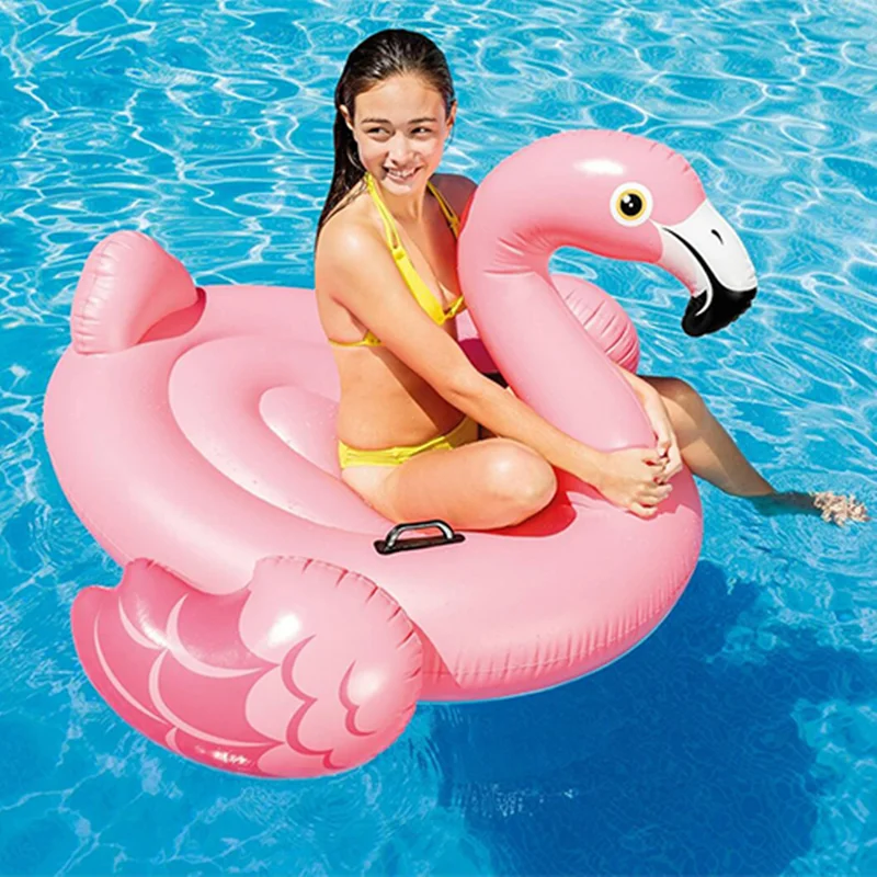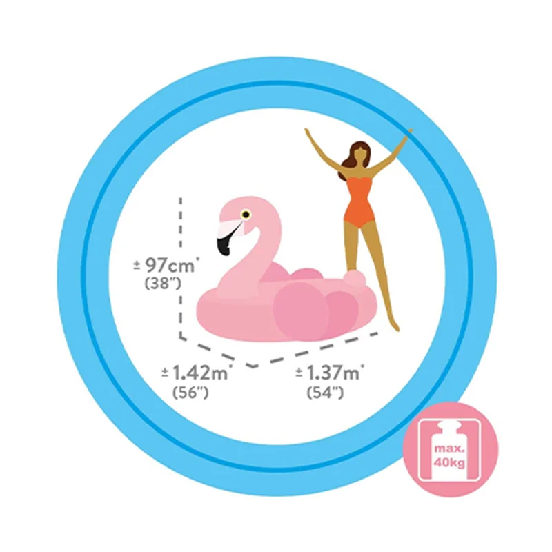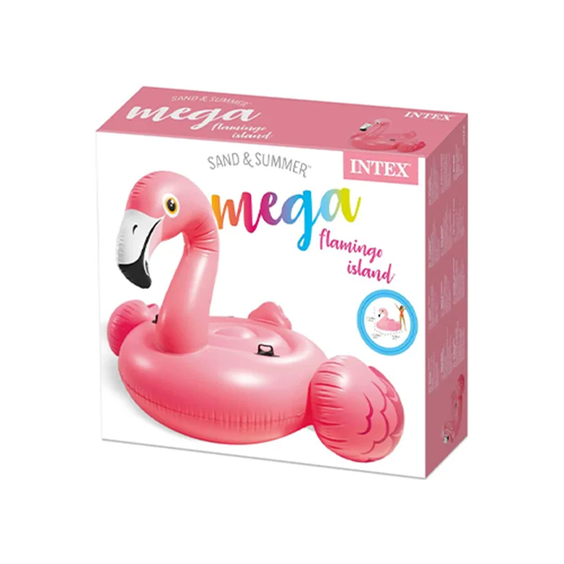 شناور بادی روی آب فلامینگو کوچک مدل 57558 یکی دیگر از زیباترین انواع شناور بادی روی آب برای رده سنی کودک و نوجوان بوده که توسط کارخانه اینتکس طراحی و روانه بازار شده است. این شناور بادی روی اب طراحی ظاهری فانتزی و زیبایی داشته که با در نظر گرفتن این ساختار ظاهری توانسته در زمانی کوتاه به یک فروش قابل قبولی دست یابد. طراخی بدنه این شناور بادی روی آب کاملا سه بعدی و برگرفته از یک فلامینگو با رنگبندی صورتی بوده که در دو سمت بدنه آن دستگیره پلاستیکی حفظ تعادل تعبیه شده تا کودک بتواند در زمان بازی با استفاده از این دو دستگیره ایمنی خود را فراهم اورد. رویه اصلی این محصول ساختاری مواج داشته که هم بستر قرار گیری کودک نرم و استاندارد شده و هم با ایجاد امکان ازدانه هوا بین بدن فرد و رویه محصول از تعریق کودک در زمان استفاده اجتناب به عمل آورد.