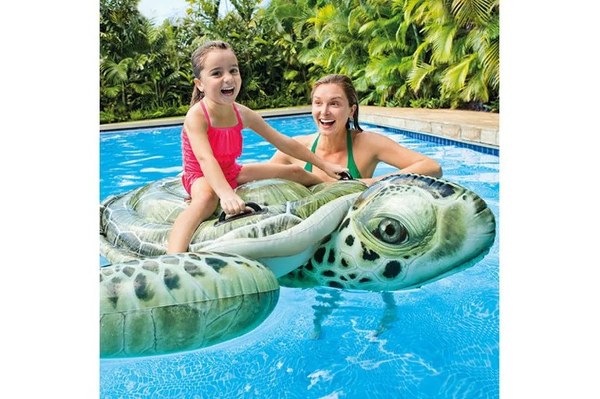 شناور بادی روی آب لاکپشت 57555 یکی دیگر از جذاب ترین انواع شناور بادی روی آب فانتزی بوده که با ساختاری منحصر به فرد و رویه باکیفیت و مقاوم توسط کارخانه اینتکس طراحی و روانه بازار شده است. این محصول بر روی سطح آب های آرام به حالت شناور قرار می گیرد و می تواند بهترین و برترین موقعیت را به دست آورد. کودکان قادر به قرار گرفتن بر روی آن می باشند و می توانند تعادل لازم در زمان قرار گیری را داشته باشند. با وجود دستگیره نگه دارنده طراحی محصول بی نقص و منحصر به فرد شده است که در نهایت می توان به داشتن آن اقدام نمود. این محصول می تواند ایمنی لازم را برای استفاده کودکان مهیاسازد و آن ها را دچار مشکل نکند.