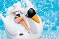 شناور بادی روی آب مدل قو 56287 یکی از باکیفیت ترین انواع شناور بادی روی آب استخر بوده که برای تفریحات آبی در روز های گرم سال در رده سنی بزرگسال توسط کارخانه اینتکس طراحی و روانه بازار شده است. این محصول ساختاری سه بعدی داشته که از دلایل محبوبیت و فروش قابل توجه آن به شمار رفته و موجب شده تا تمامی افراد به راحتی این شناور بادی روی آب را در سبد خرید خود قرار دهند. طراحی بدنه شناور بادی روی آب مدل قو 56287 در واقع از یک تشک بادی گرد با بدنه ای مواج تشکیل شده که در بخش ابتدایی صورت و گردن قو و در کناره ها باله های آن تعبیه شده است. در دو سمت گردن قو نیز تعداد دو عدد دستگیره پلاستیکی قرار داده شده تا در زمان استفاده بتوانید از این طریق تعادل خود را بر روی سطح آب حفظ کنید.
