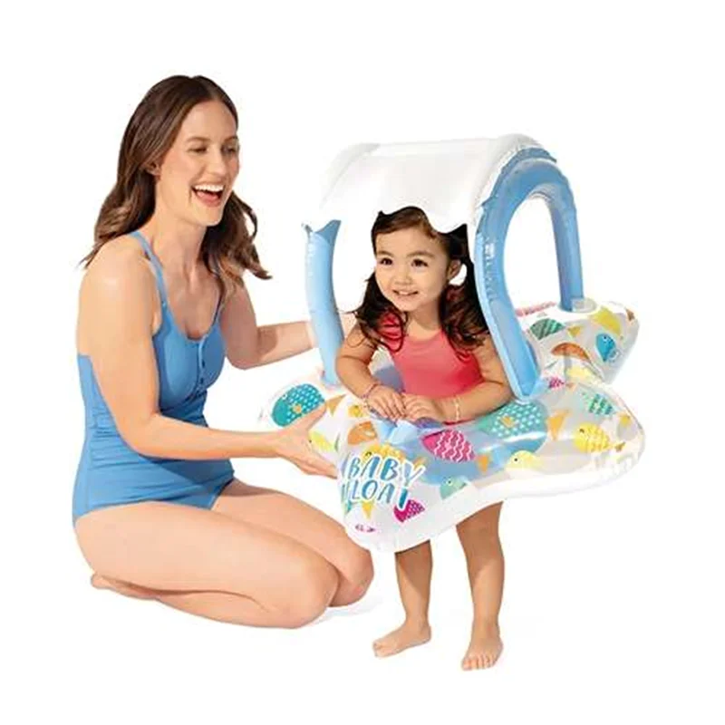 شناور بادی شورتی سایبان دار اینتکس مدل ستاره آبی از سری محصولات مورد نیاز برای داشتن تفریحات آبی است که امکان حضور کودکان در محیط های آبی را فراهم می کند و می تواند با ایجاد تعادل و استحکام در این موقعیت برای آن ها لحظات شادی را ایجاد سازد. با این وجود است که والدین نیز با خیالی آسوده می توانند نسبت به حضور کودکان در محیط های آبی اقدام نمایند و برای آن ها موقعیت استاندارد و خاصی را ایجاد سازند تا در بستری ایمن بتوانند به تفریحات مهیج آبی بپردازند. این محصول دارای حفره جهت قرار دادن پا است و به این دلیل با نام شناور بادی شورتی شهرت گرفته است و می تواند تعادل بیش تری برای حضور کودکان ایجاد سازد.