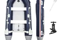 این محصول طراحی خاص و جذابی دارد و به صورت پهن طراحی شده است که به خوبی بر روی آب قرار گرفته و با سطح آب منطبق می شود. به این ترتیب به خوبی تعادل خود را حفظ کرده و امکان واژگون شدن قایق بادی بر روی آب بسیار کم می شود. این محصول دارای دو عدد پارو نیز می باشد که با وزن بسیار کم و استحکام بالا طراحی شده است. هم چنین دارای طناب نجات بوده و و دستگیره هایی برای حمل قایق نیز دارد. برای راه اندازی آسان این قایق بادی یک پمپ باد دستی نیز به همراه قایق بادی تقدیم شما می شود. محصول فوق از درجه کیفی بالایی برخوردار بوده و تا سال ها قابل استفاده است.