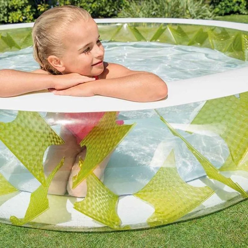 در بخش بدنه این استخر بادی کودک از وینیل شفاف استفاده شده است که دارای طرح هایی فانتزی به رنگ سبز می باشدو جلوه ویژه ای را به این محصول داده است . بدنه و کف این استخر به صورت بادی می باشد که بهترین حالت را برای بدن فراهم می آورد و مقاومت آن را در برابر فشار آب به خوبی افزایش داده است . لازم به ذکر است که از این استخر می توانید به عنوان استخر توپ نیز استفاده کنید و در واقع با یک تیز دو نشان بزنید . همچنین وزن این محصول 6 کیلو گرم می باشد که نشان از سبک بودن آن دارد و به راحتی قابل جا به جایی می باشد از همین رو می تواند بهترین گزینه برای سفرهای شما عزیزان نیز به شما بیاید . به همراه این محصول یک عدد برچسب تعمییرات برای شما عزیزان ارسال می شود که توسط آن و به راحتی در صورت بروز مشکل می توانید اقدام به رفع مشکل نمایید .
