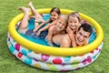 استخر بادی طرح رنگی متوسط محصولی زیبا از کمپانی معتبر اینتکس میباشد که مناسب سنین کودکان بوده ودارای وزن 1.5 کیلوگرم است این وزن سبک امکان حمل وراه اندازی راحت را برای مصرف کننده فراهم آورده است این استخر دارای یک پمپ باد دستی مجزا میباشد که به راحتی میتوان در منزل ودر مسافرت از آن استفاده نمود علاوه بر این خصوصیات میتوان به عنوان وان واستخر توپ از آن استفاده کرد این استخر بصورت گرد ودارای ساختاری سه طبقه میباشد ورنگبندی جذاب وزیبایی دارد که مناسب سلیقه کودکانه میباشد جنس بدنه وبخش کناری این استخر از pvc طرح چرم وطرحدار بوده وجنس کف آن از pvc دولایه میباشد که دربرابر اشعه آفتاب وهرنوع دمای آبی مقاومت بالایی دارد وامکان استفاده در فضای باز را به شما میدهد ابعاد این استخر قطر 114 سانتی متر, ارتفاع 25 سانتی متر,با توجه به این ابعاد ظرفیت آب آن 156 لیتر میباشد در صورت آسیب دیدن این محصول زیبا در بسته بندی آن برچسب تعمیرات ودفترچه راهنما نیز وجود دارد. برای خرید این استخر بادی به نمایندگی اینتکس مراجعه نمایید.